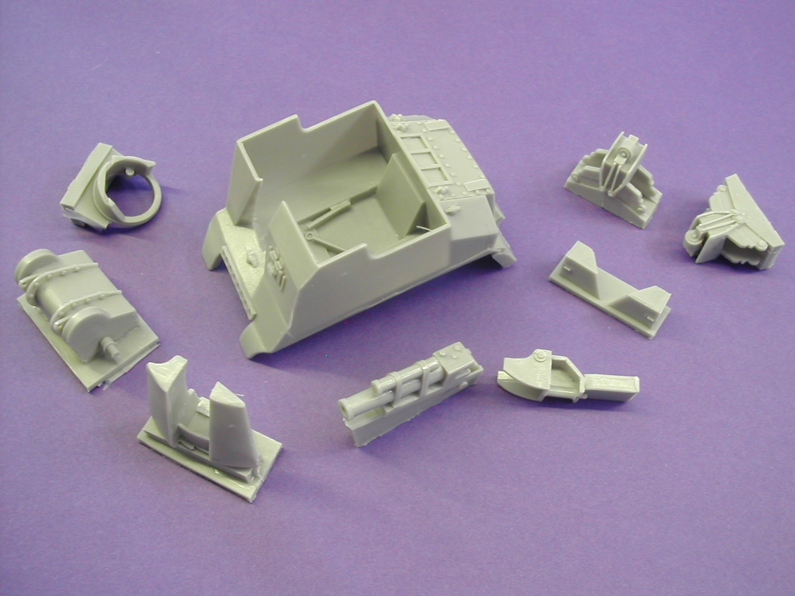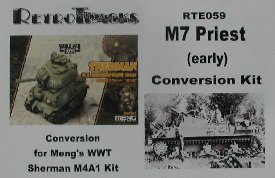 10-part resin kit designed to fit the Meng WWT M4A1 Sherman kits. This conversion kit includes the early-style boogies (road wheels to be taken from the Meng kit) and early-style transmission housing. A ‘late production’ M7 Priest can easily be done with a little extra scratchbuilding work.